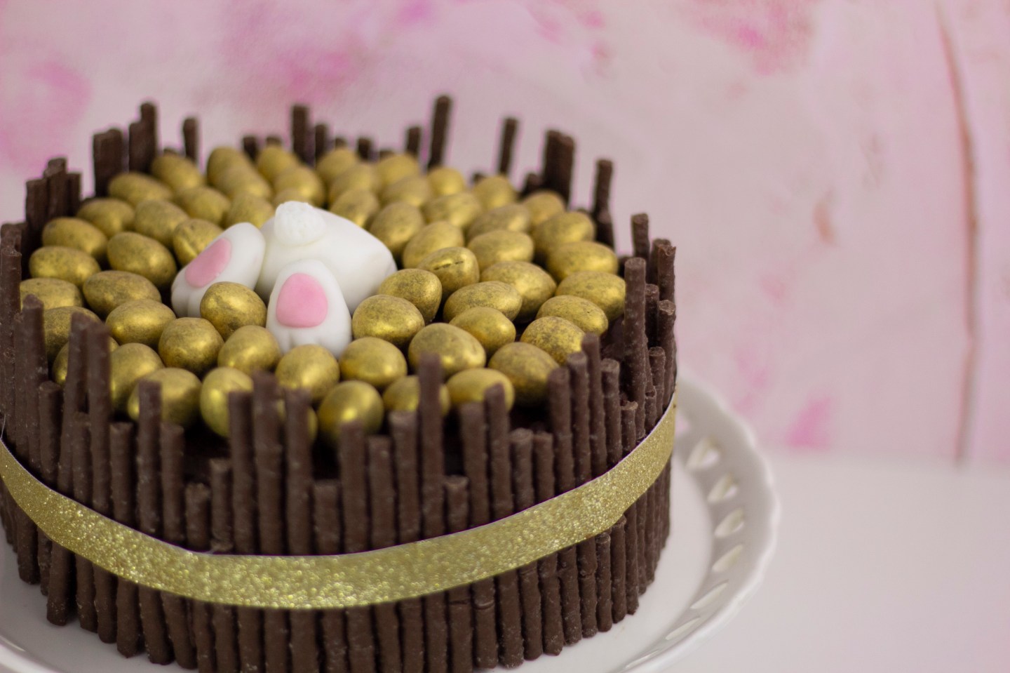 Easter is just around the corner, and it’s Chocolate and Eggs GALORE in the shops! If you didn’t already know, the Galaxy Golden Eggs are gluten free and coeliac friendly here in England! And what better way to use them, than in a cake that celebrates the chocolatey goodness of Easter and spring!